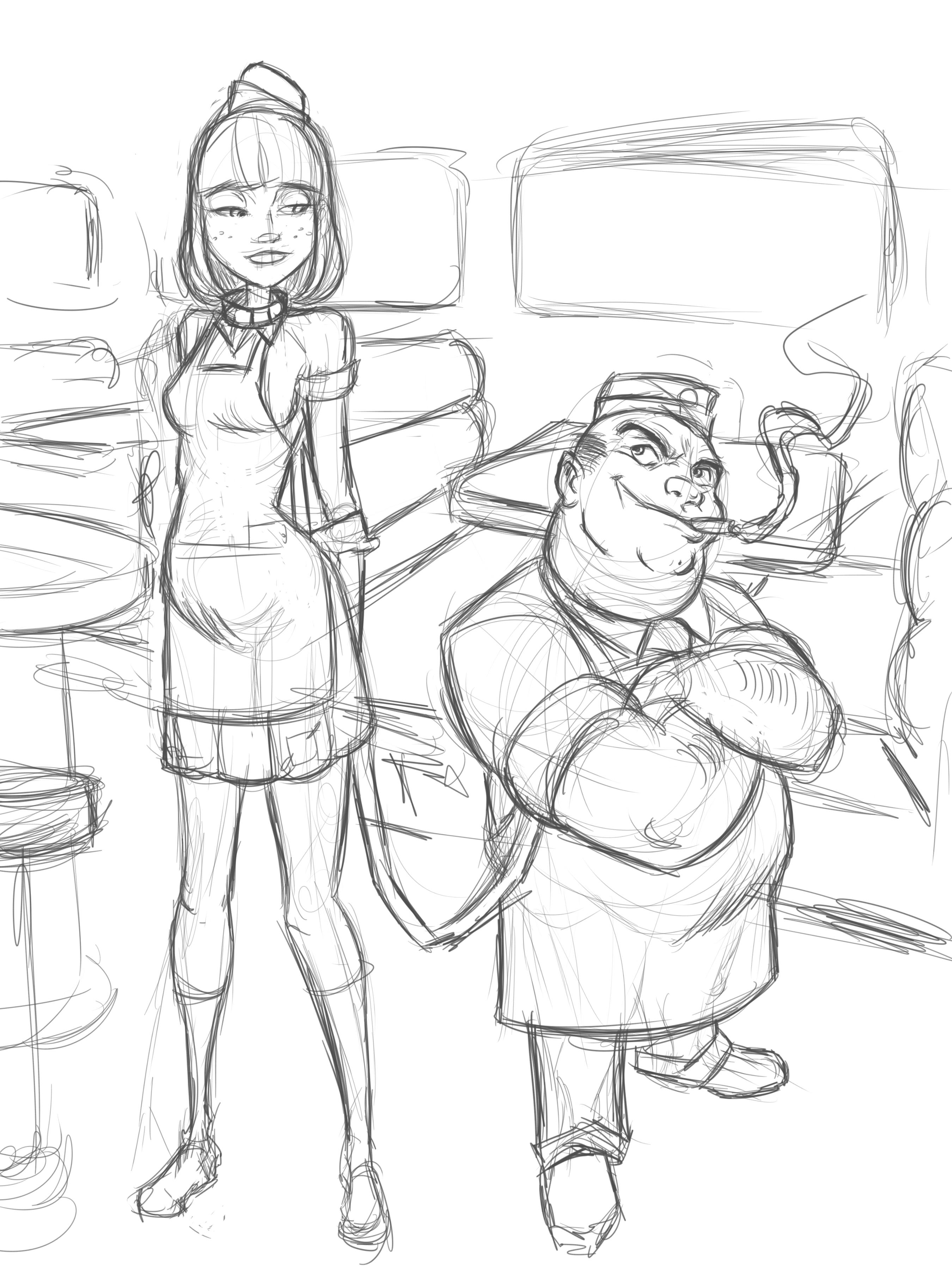 The door of the staff room opened and Henry stepped out with a yawn, but she paid no mind to him. She polished the metal rails around the counter, twisting and bending to get them from every angle.